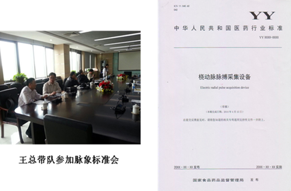 2014年4月,中华人民共和国医药行业中医诊断行业标准会在天津医疗器械质量监督检验中心召开,公司作为中医诊断行业标准制定方、验证方,董事长王联携技术总监、产品部经理应邀参加行业标准会议。
