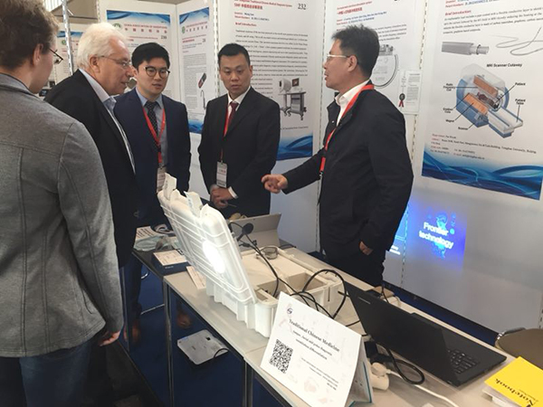 芜湖圣美孚科技有限公司申报项目在顺利通过国内多重审查遴选后,成为中国中医诊疗设备企业代表,作为中国代表团成员参加了本次发明展。同时受邀参展的中国代表团项目成员还有清华大学、北京交通大学、北京宇航系统工程研究所、中国航天科技集团、国家电网公司等。11月2日展会开幕,中国驻德国大使馆特派科技一秘李国强教授前来展会参观中国代表团并鼓励。